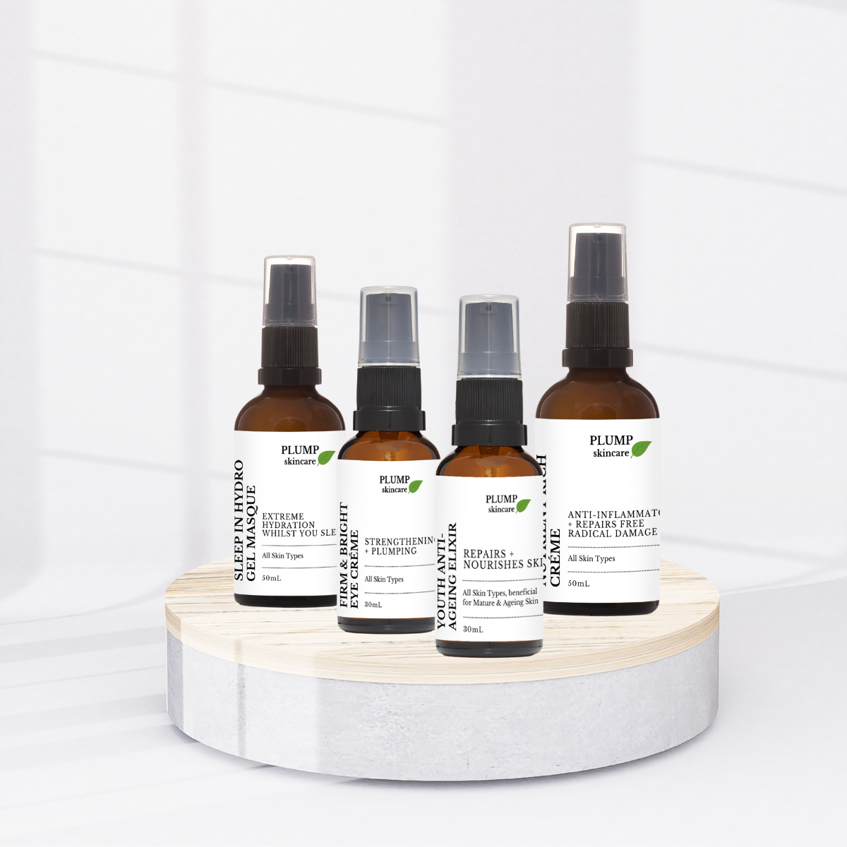 Products: Youth Anti-Ageing Elixir, Firm & Bright Eye Crème, Nutrient Rich Crème, Sleep in Hydro Gel Masque